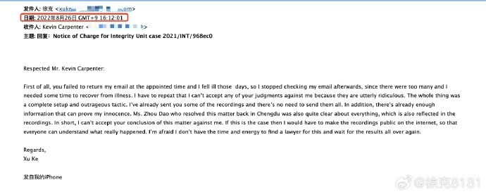徐克在公布的沟通邮件中,提及了有录音存在。